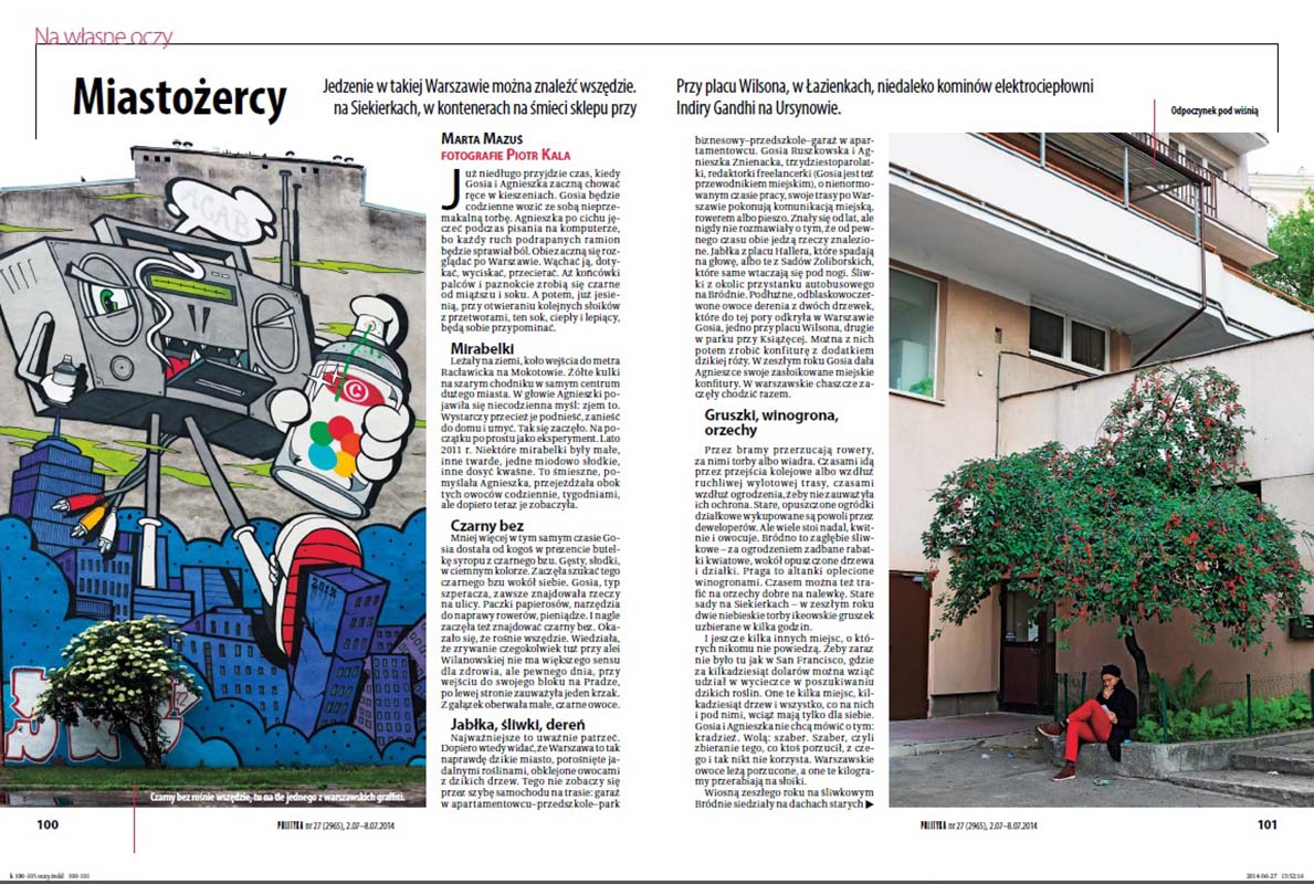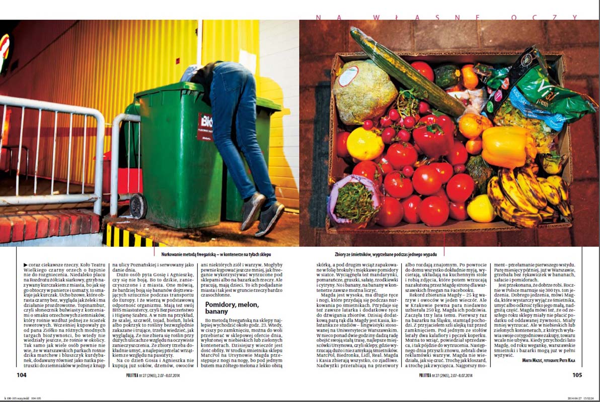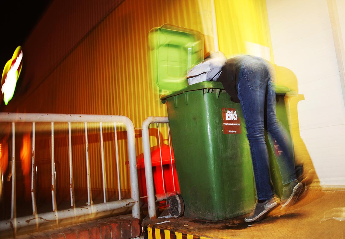 MIASTOŻERCY Cykl zdjęć wykonany dla tygodnika „Polityka” w dziale „Na własne oczy” o różnych sposobach pozyskiwania jedzenia w mieście za darmo. Warszawa 2013 – 2014.