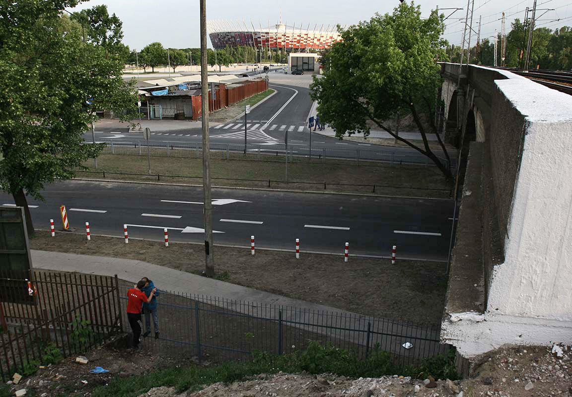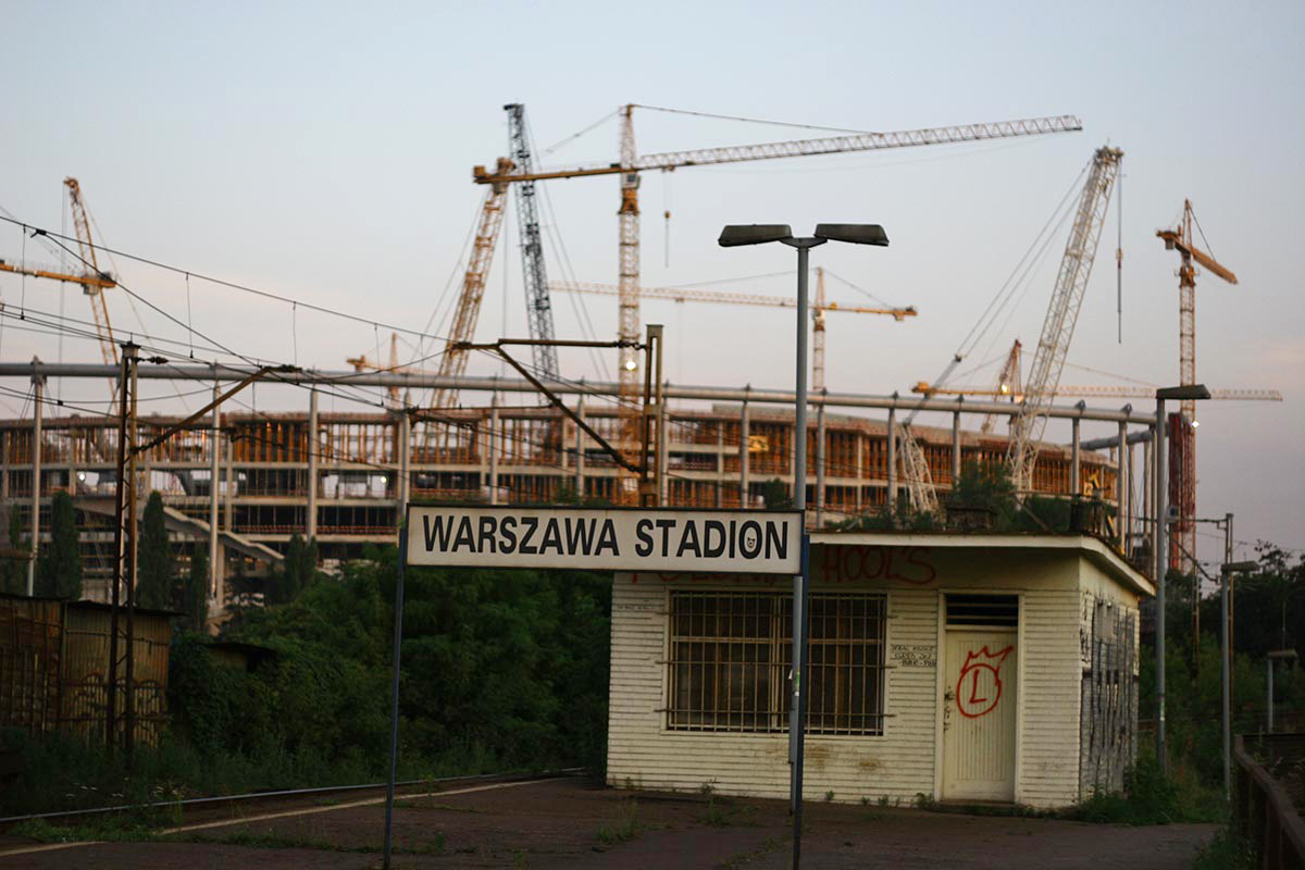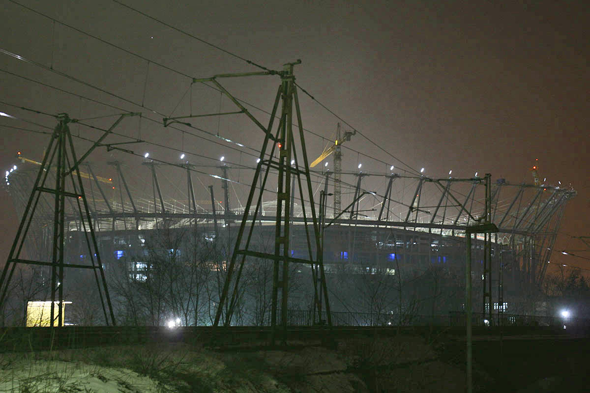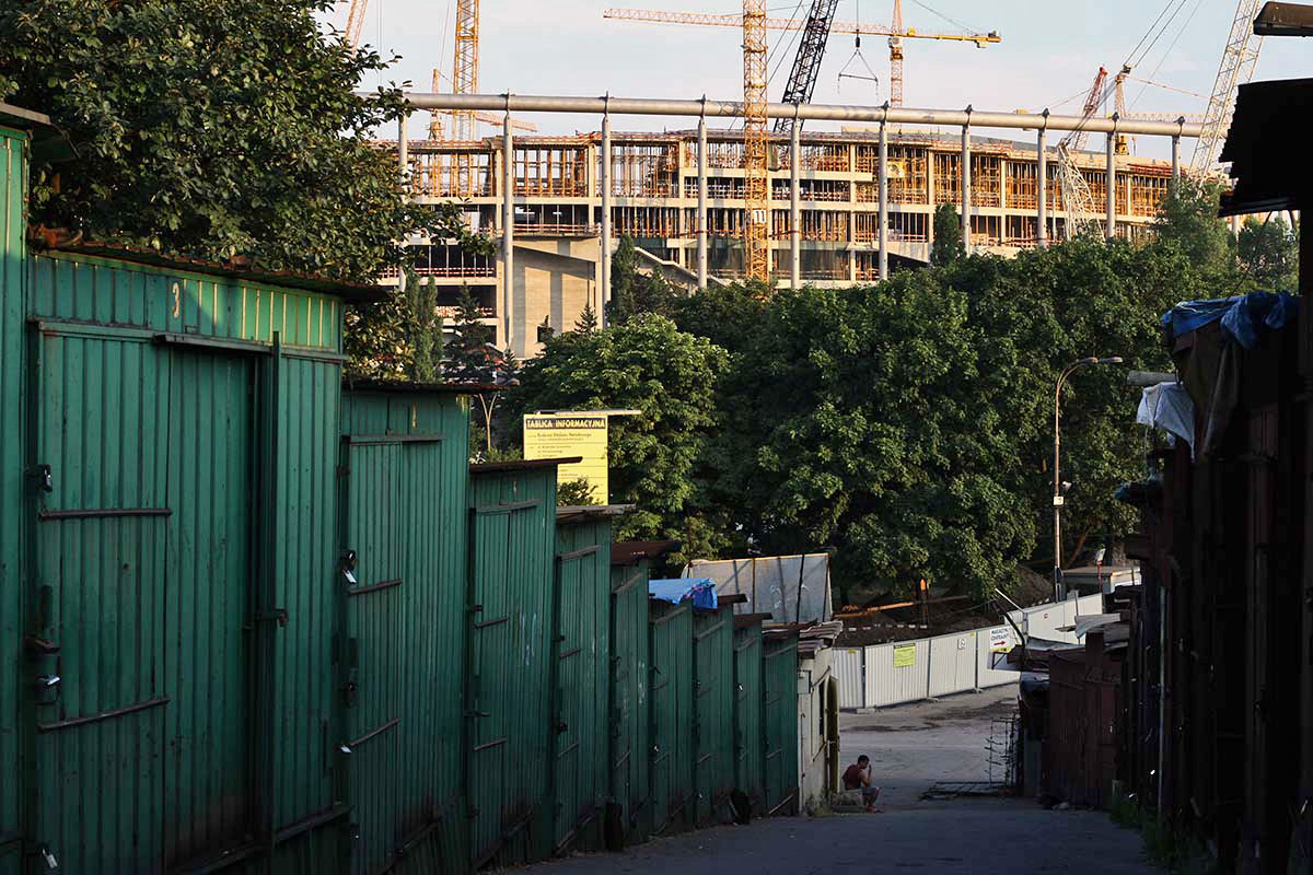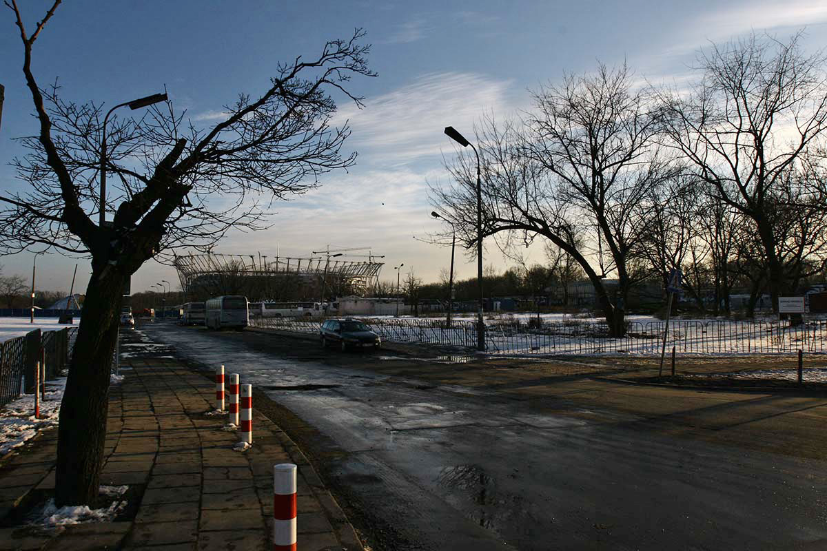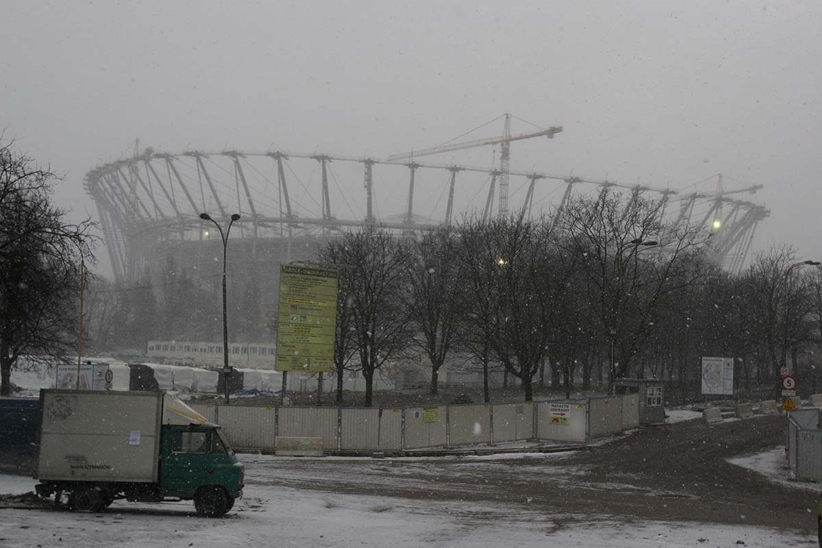 Warszawska Praga podczas budowy Stadionu Narodowego w latach 2010-2012.